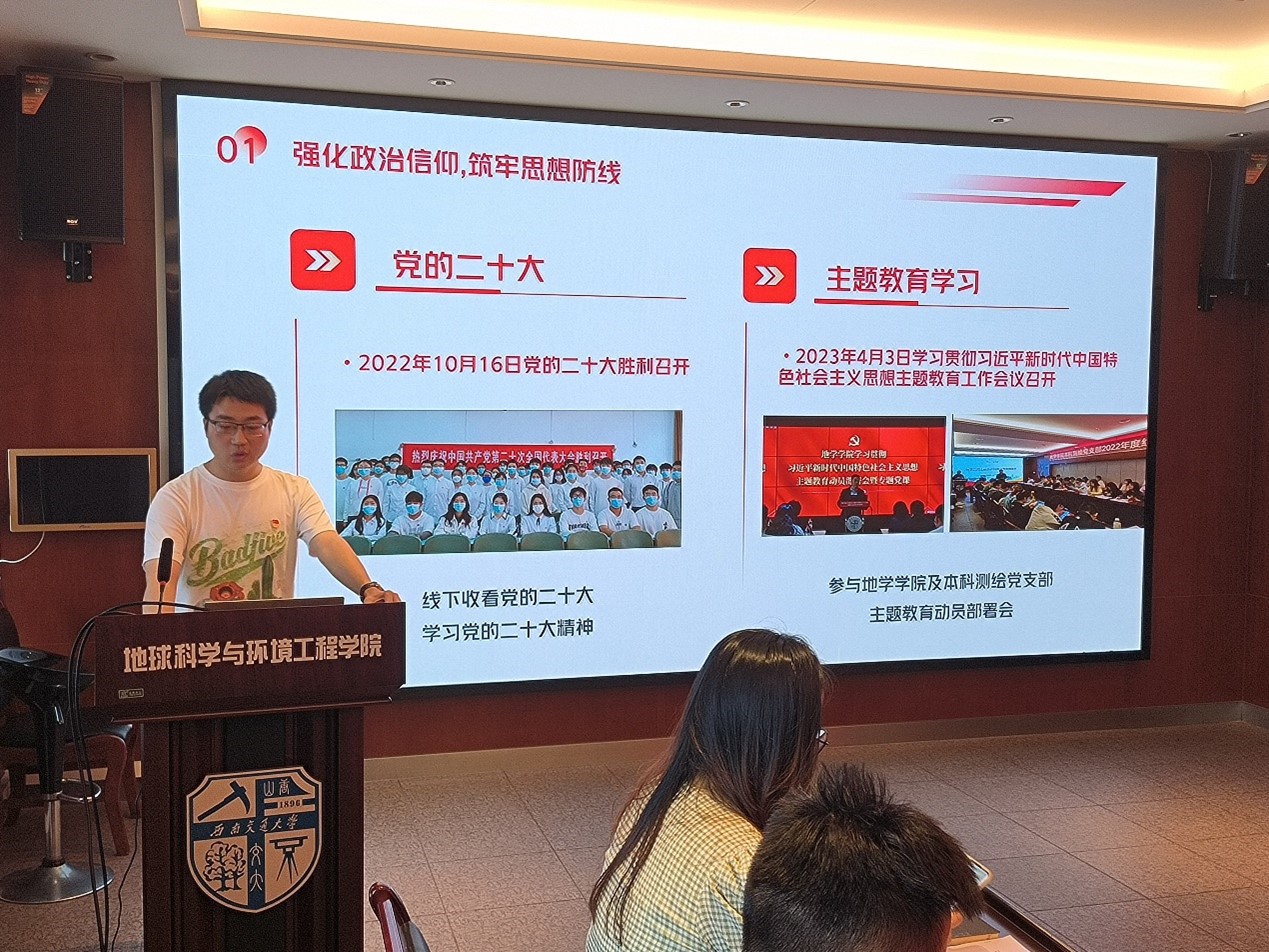 为进一步加强党支部队伍建设工作,切实提高党员发展对象综合素质,严把党员发展质量关,充分发挥党员先锋模范作用和党组织战斗堡垒作用。威廉体育williamhill本科测绘党支部于2023年6月9日19:30在X4520召开2022-01期预备党员转正大会暨2023-01期预备党员接收大会:审议、讨论、表决关于任纪州、应涛泽2名同志转为中共正式党员以及郇江龙等7名同志接收为中共预备党员的相关事宜。转正大会由支部指导老师李婧老师主持、接收大会由本科测绘党支部书记任纪州同志主持。党支部全体党员七名发展对象出席本次会议。