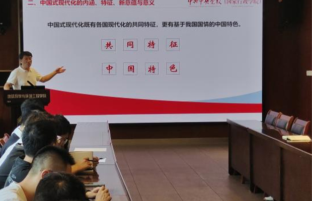 为贯彻落实党的二十大精神,明确党的中心任务,推动员工党支部成员学习理论知识和提高党性素养,2023年6月19日下午,委委员胡卸文教授应邀为地质党支部讲党课,以“中国式现代化与高质量发展”为题,对中国式现代化进行了全面的解读。