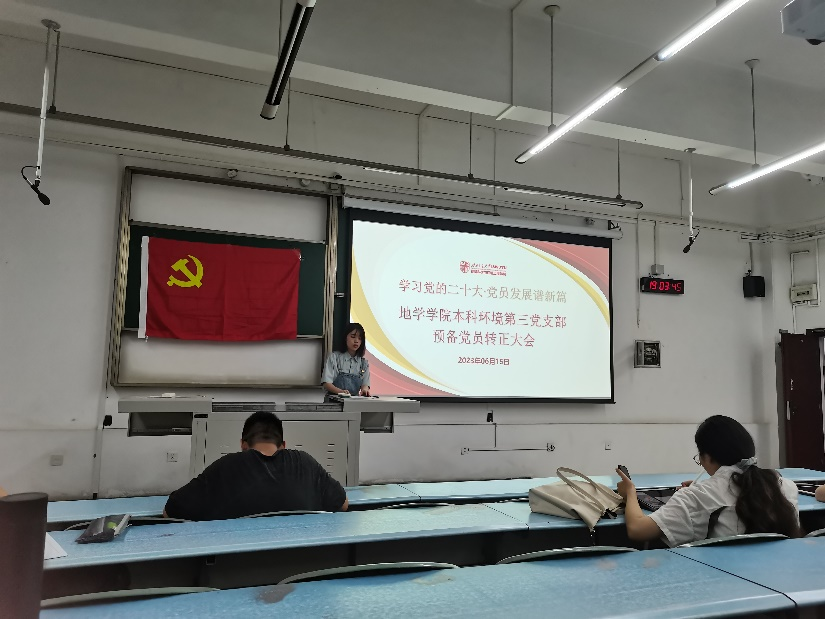 注入新血液,凝聚新力量。威廉体育williamhill本科环境第三党支部于2023年6月15日 19:30在X2213召开预备党员转正大会,本次会议由钟若兰同志主持。