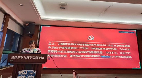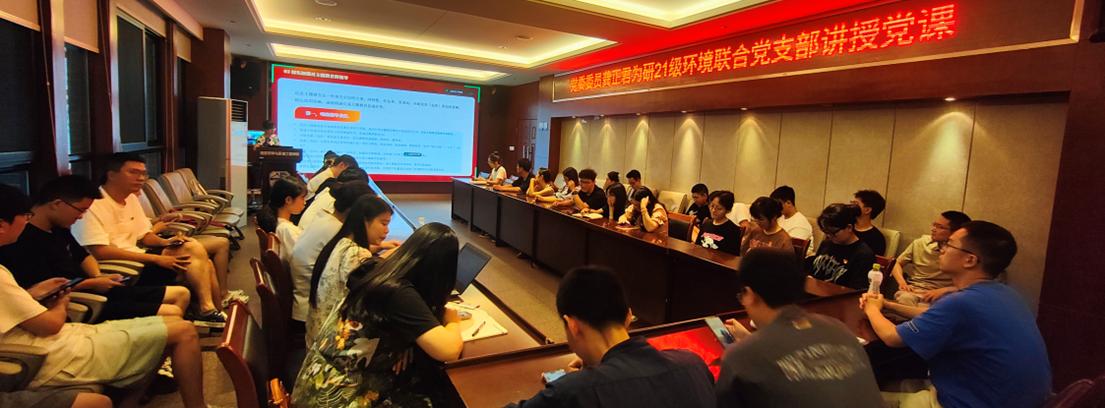 为深入学习贯彻习近平新时代中国特色社会主义思想,提高研究生党员理论修养与党性素质,2023年7月3日晚上19:00,委委员龚正君老师在X4520教室为研21级环境第一党支部、第二党支部讲授“在学习贯彻习近平新时代中国特色社会主义思想主题教育工作会议上的讲话”专题党课。