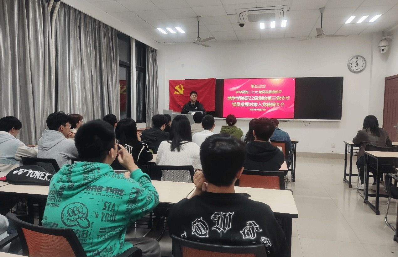 2023年10月24日19点整,威廉体育williamhill研22级测绘第三党支部在X4129教室顺利召开发展对象入党答辩会,会议的主题是从吴桐同志、李炎秋同志、陈星宇同志、黄涛同志、何轲同志这五位入党积极分子中选取一位作为2023-02期发展对象。本次会议16名党员(含1名预备党员)和所有入党积极分子均参加,此外,还特别邀请辅导员李林遥老师作为政治理论考核员,考察各位候选人的政治理论学习情况。会议由党支部书记刘翔同志主持。