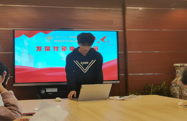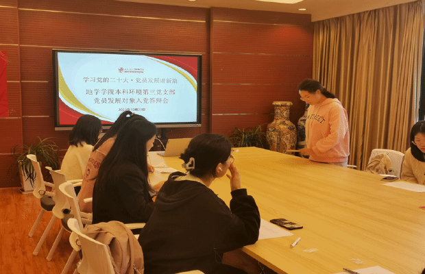 首先,由党支部书记介绍本次答辩会议的目的、议程以及各位候选人的基本情况,然后,三位候选人所在的21级本科环境第三团支部的团支部书记武佳丽同志介绍了候选人在支部的基本表现;