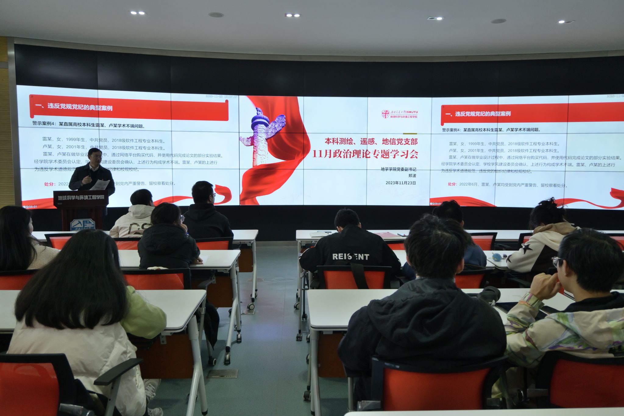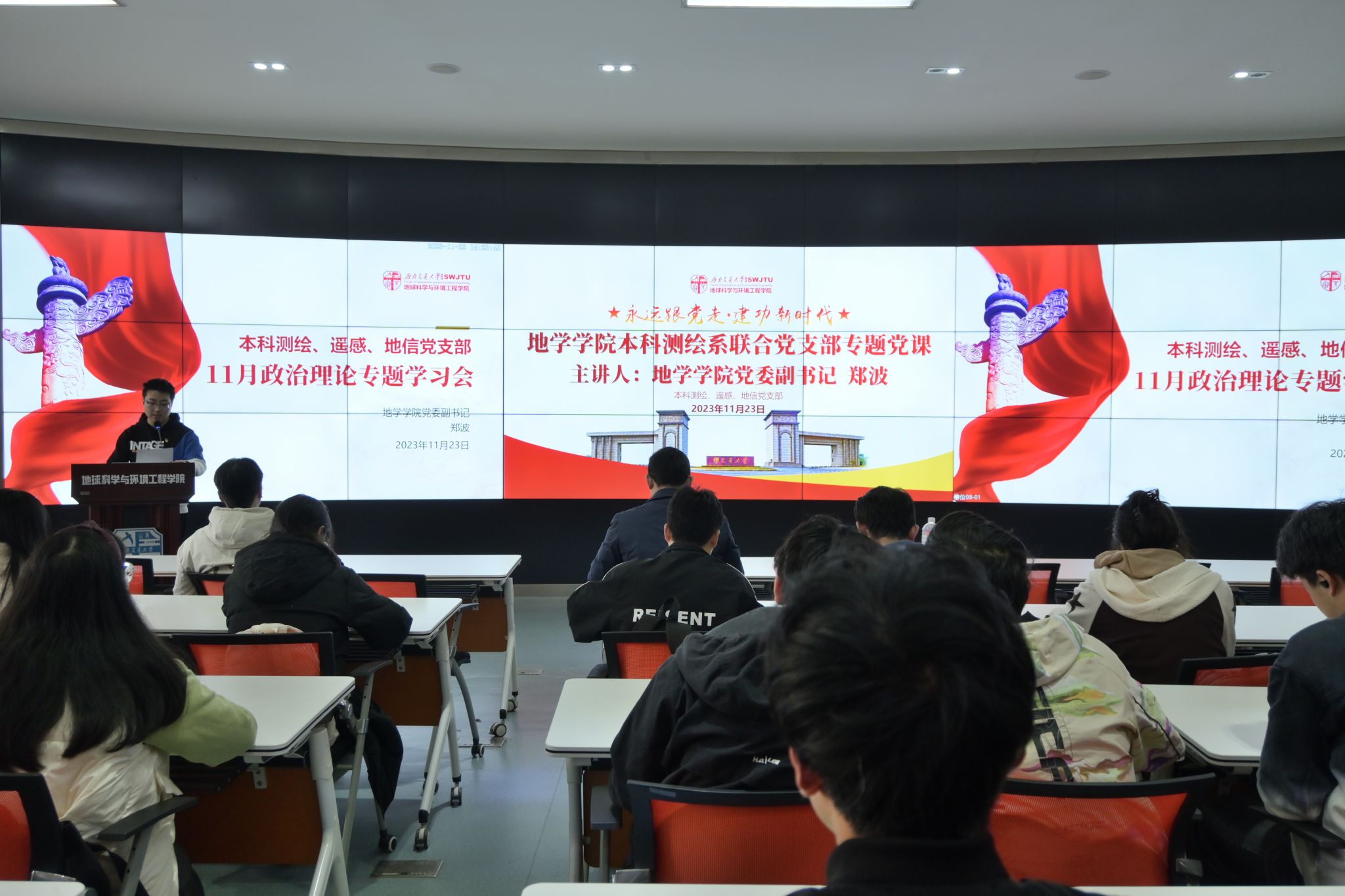 为深入学习贯彻习近平新时代中国特色社会主义思想和党的二十大精神、加强党员教育管理工作,威廉希尔williamhill官网威廉体育williamhill本科测绘、地信、遥感党支部于2023年11月23日14:00在犀浦校区X4243联合开展了“永远跟党走·建功新时代”主题党日活动,活动分为十一月政治理论学习和专题党课,政治理论学习由本科测绘党支部书记任纪州同志领学,专题党课由公司党委副书记郑波主讲,本科测绘、地信、遥感党支部部分党员同志、2023-02期发展对象参与。