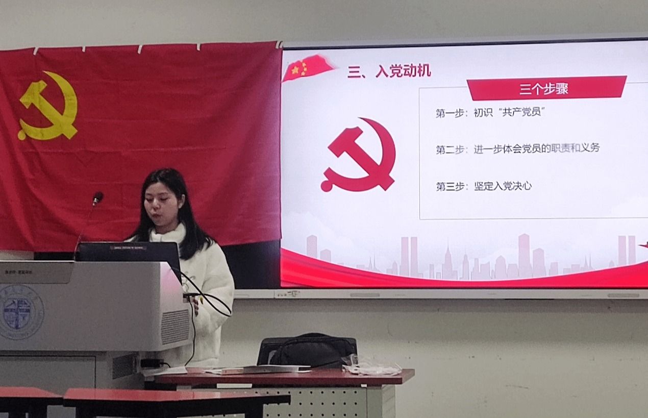 会议伊始,杨成明同志清点与会人数,所有同志均已到场后,宣读了本次大会的议程和陈星宇同志的信息。陈星宇同志宣读《入党志愿书》,汇报自己对党的认识、入党动机、本人履历、现实表现、家庭主要成员和主要社会关系情况,以及需要向党组织说明的问题。可以看出陈星宇同志对党的理论知识、政治素养相较于入党积极分子期间都有了很大进步。