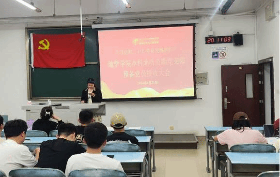 威廉体育williamhill本科地质资勘党支部于2024年4月21日晚上19时30分在X2323召开2024-01期预备党员接收大会,本次大会的议题:讨论是否同意接收张轶飞、孙钰娴、郭旭、马啸阳、冯佳宇、吴祠宇6名同志为预备党员。本次大会由本科地质资勘党支部书记刘伟婷同志主持。