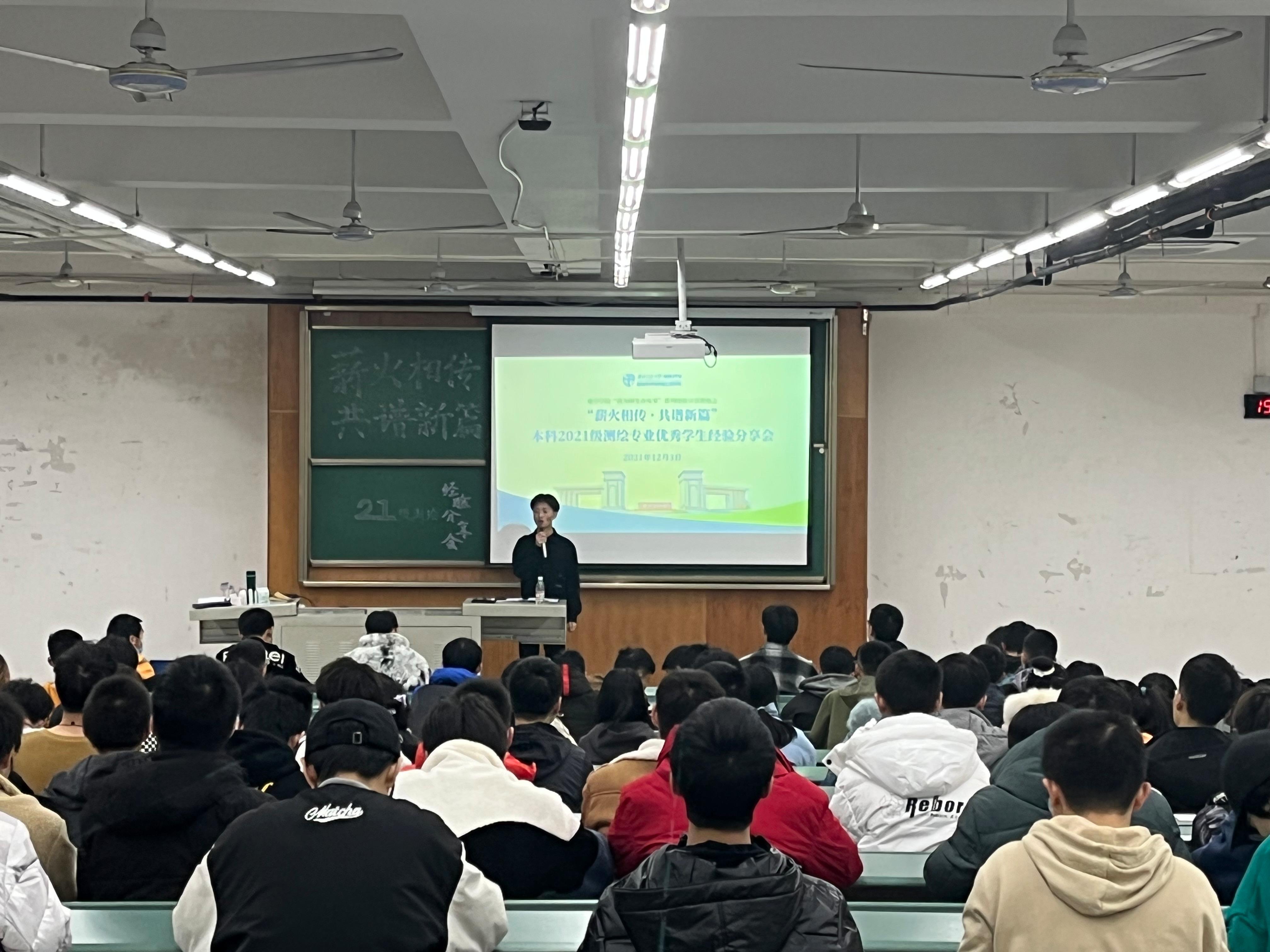 为帮助新生更好地适应大学学习与生活,开拓视野、树立明确目标,全面提升能力素养,2021年12月3日晚19:30,威廉体育williamhill于X4350教室开展“薪火相传,共谱新篇” 本科2021级测绘优秀员工经验分享会。