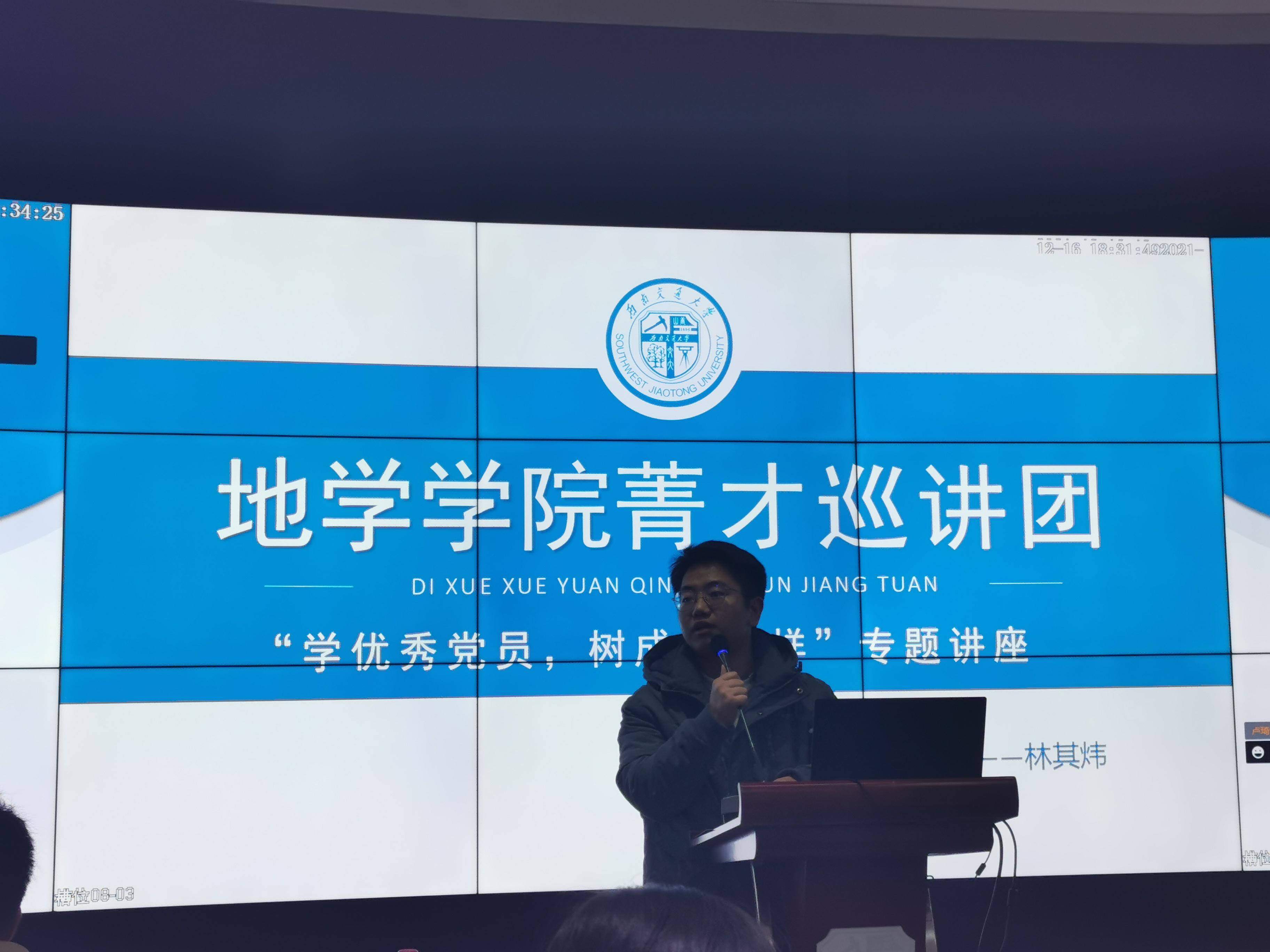 为贯彻实施青年马克思主义者培养工程,用马克思主义中国化的最新成果武装青年,让广大青年学子进一步明确青年人如何在一个更为复杂多变的环境中阔步走向未来,拥抱新时代,担当起新使命,威廉希尔williamhill官网威廉体育williamhill于2021年12月16日晚19:00在X4243教室,由威廉体育williamhill菁材巡讲团成员,本18级遥感科学与技术林其炜同学,为威廉体育williamhill员工入党积极分子,党的发展对象,预备党员,正式党员开展了“学优秀党员,树成长榜样”系列讲座,本次讲座采用“线上+线下”结合方式举行。