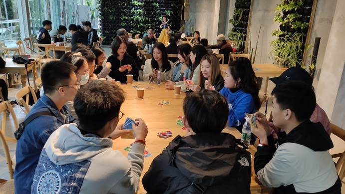 随后,同学们来到位于植物园大草坪旁的休闲茶吧,分小组开展桌游比赛。在游戏中,同学们忘却了科研学习中的烦恼,从繁重的科研任务中抽身出来,享受了一段闲暇时光。