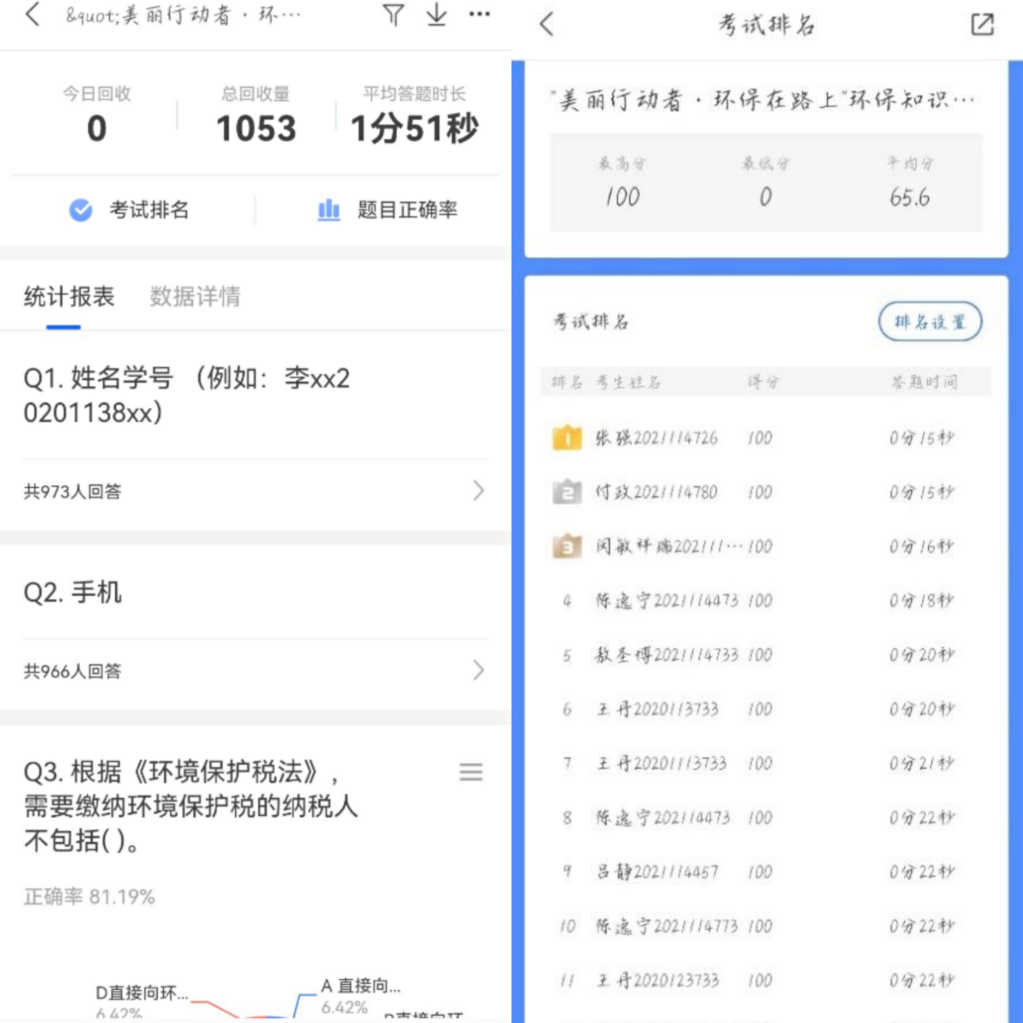 图左为总的问卷提交数;图右为部分答题同学的排名