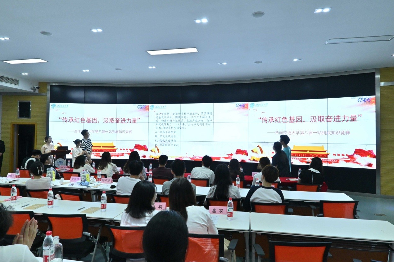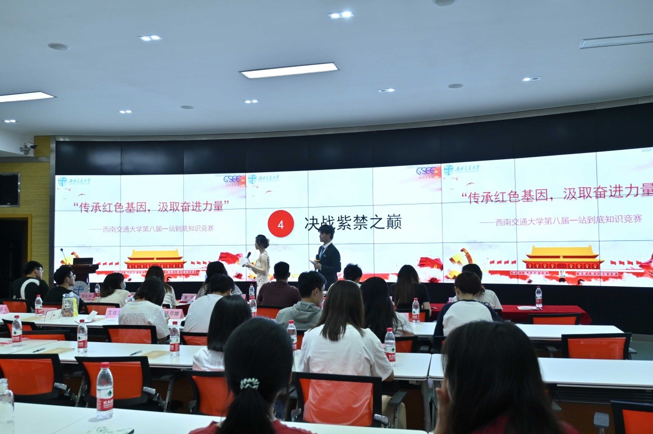 5月8日晚七点半,由威廉希尔williamhill官网校团委主办,威廉希尔williamhill官网威廉体育williamhill团委员工会、威廉希尔williamhill官网威廉体育williamhill综合素质提升中心承办的“传承红色基因,汲取奋进力量” 第八届一站到底知识竞赛决赛在犀浦校区X4243顺利举行。威廉体育williamhill团委书记杨都强,威廉体育williamhill团委副书记、员工会指导老师李婧,威廉体育williamhill团委副书记、综合素质提升中心指导老师董可,威廉体育williamhill园区与事务中心指导老师王琼,威廉体育williamhill学习与科创中心指导老师梁爽,建事务中心指导老师刘礼钊,地学青协指导老师罗然,威廉体育williamhill就业指导中心指导老师王姝歆、威廉体育williamhill团建中心指导老师赵瑞涵以及各员工组织主席参加活动。