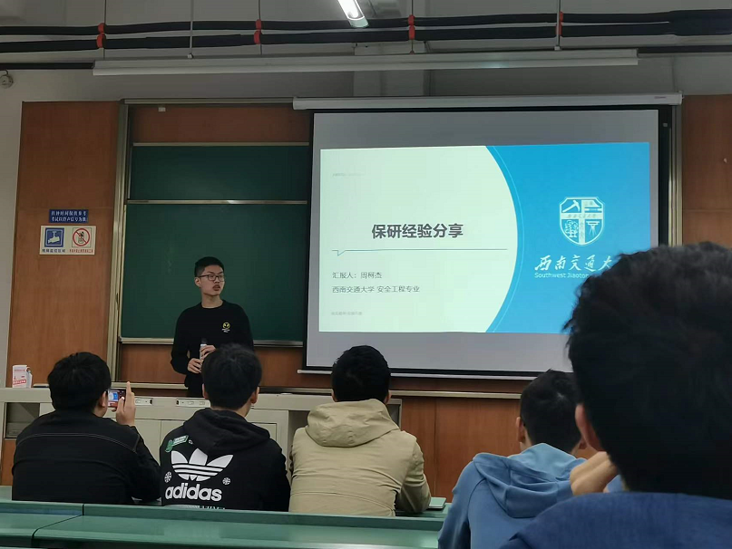 紧接着周柯杰讲解了保研流程,并且介绍了有关的材料。同时建议想要保研的同学可以从专业成绩、英语水平和科研竞赛三个方面进行提升。