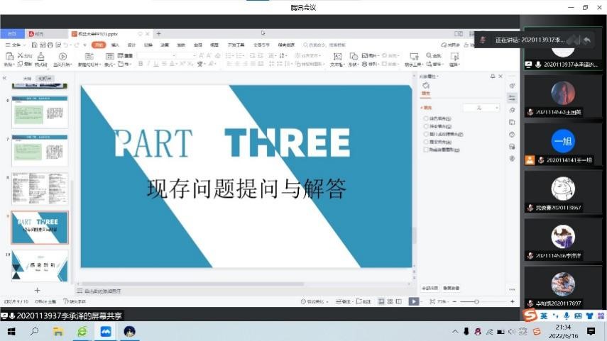 最后,员工园区与事务中心生活部部长李承泽针对现存问题进行了线上答疑,并再次提醒各生活委员及时关注反馈同学们的权益问题,学会积极主动地调度资源进行解决或及时反馈给员工会权益服务部。