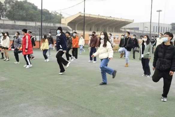 活动伊始,主持人宋金燕热烈欢迎了大家的到来并简单介绍接下来的游戏环节。首先是暖身破冰环节,在宋金燕的主持和领操员的带领下,同学们先后完成了“畊”我一起跳、“随令而动”、“浴室舞王”活动,帮助同学们调整状态、预防运动损伤。