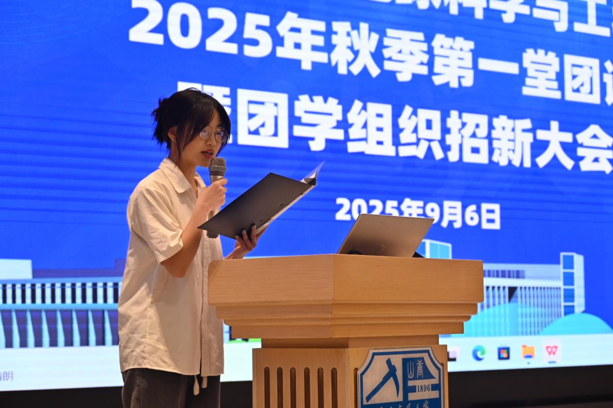 9月6日下午,威廉体育williamhill2025年团学组织招新宣讲大会在犀浦校区“双一流”中心203报告厅开展。学院团委书记杨都强、团委副书记李婧、文强、胡佳慧、辅导员李林遥、吴有泰、黄欣宇、刘朝霞等老师出席了大会,与会者还包括各团学组织负责人及2025级全体新生。