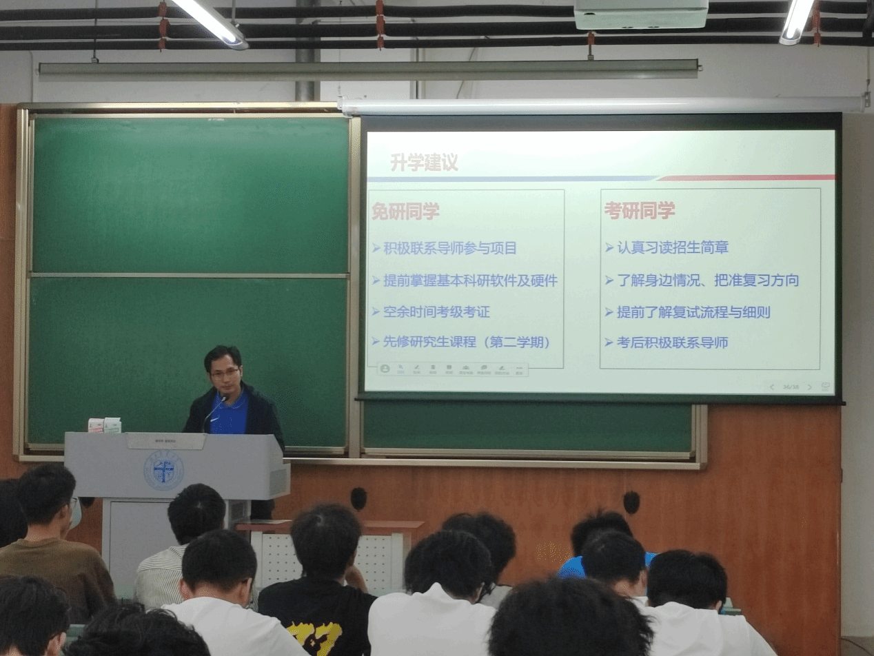 交流会现场,廖昕老师首先围绕学科介绍、专业建设、团队概况、研究方向等向同学们介绍了地质系概况,同时介绍了创新型人才国际合作培养项目,解答了专硕和学硕的区别,解读了学院研究生招生简章。