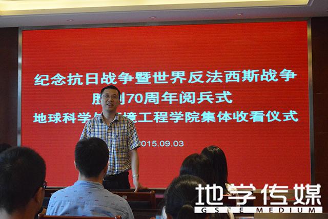 9月3日上午9点,委组织新党员和入党积极分子在X4520收看阅兵仪式。出席本次仪式的嘉宾有委副书记傅尤刚老师,地学传媒中心指导老师王静雅老师,员工会指导老师田凤晓老师。