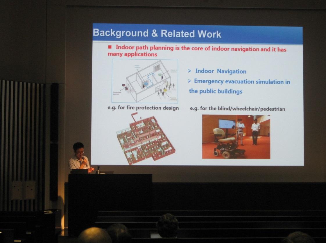 此次研讨会包括建筑信息模型,室内位置服务,基于图像的建模,可穿戴的传感器设备,点云数据处理等5个专题。在21日下午的室内位置服务专题研讨会上,曾李阳代表公司研究团队做了“Multi-level Indoor Path Planning Methods”的大会口头报告,并与参会专家进行了交流。