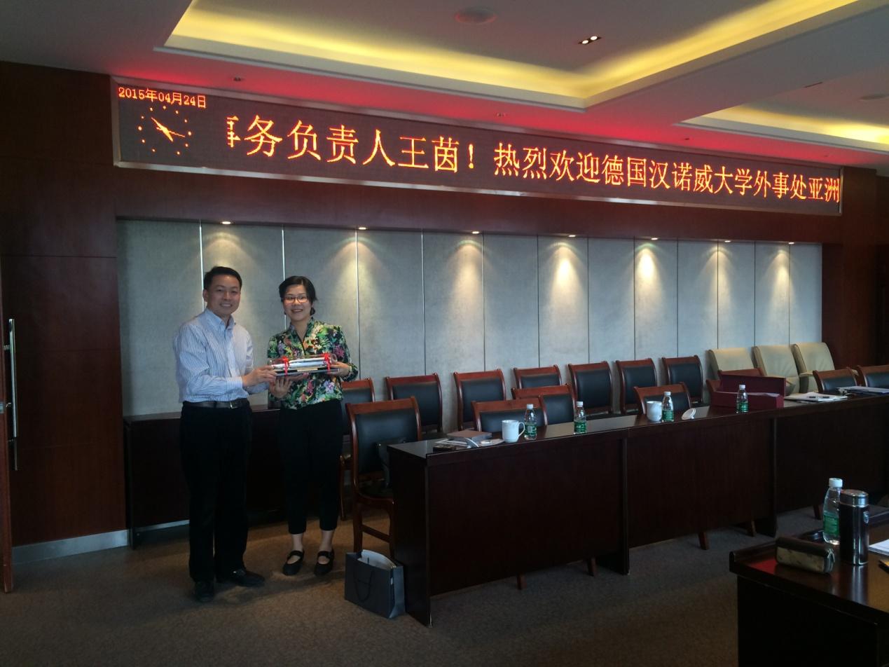 朱庆经理对王茵到访公司表示热烈欢迎。双方就选派交换生、双学位以及两校教师间的交流与科研合作等详细交换了意见。国际处许军华老师表达了学校对此次与德国汉诺威大学进行校际间合作的期待,并介绍了学校目前开设的全英文课程以及学校对交换生等的相关支持政策,希望通过此次会面,尽快推动两校间全方位的合作。