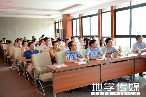 几分钟的休息之后,周公旦副研究员围绕“碎屑流运动特性和数值模拟”展开了讲述。首先,周副研究员说明了传统的连续介质模型没有考虑侧向约束力、地表侵蚀以及摩阻力和剪切速率的关系三个方面的确定。然后,阐述了怎样运用理论分析和水槽实验、数值模拟(离散元DEM)相结合的方法,研究碎屑流的流变特性,描述碎屑流剪切速率对床面(基底)摩阻力的影响,对颗粒流运动模型(Savage-Hutter)模型和数值计算模型进行了详细的解说。最后,与同学进行了亲切的互动。