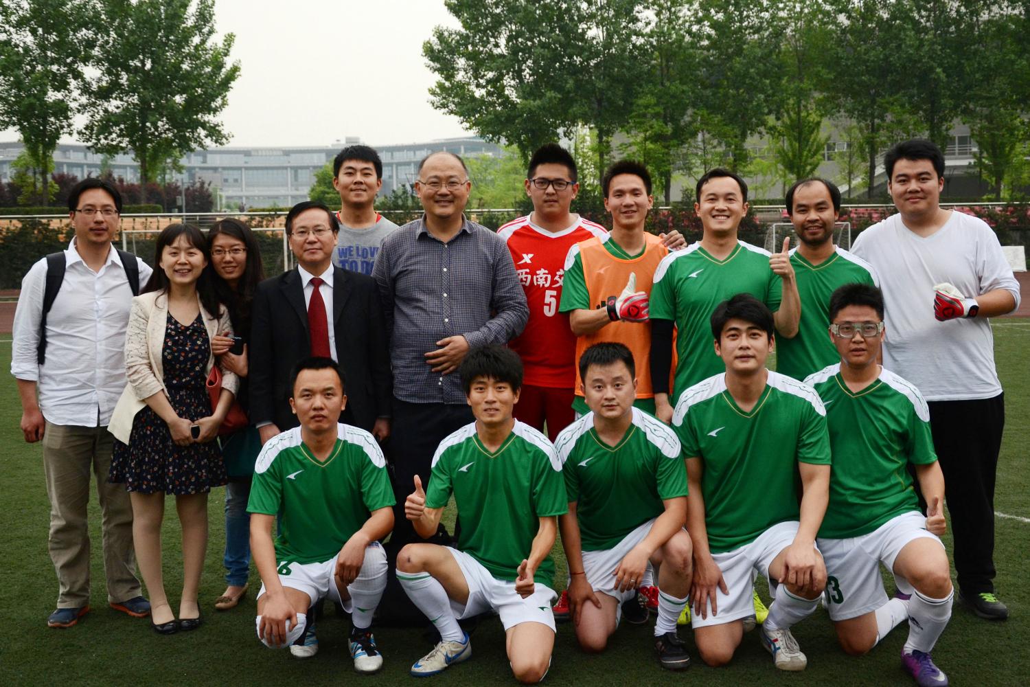 4月23日下午五点半,公司党委书记徐瑞堂书记和副经理齐华教授,以及众多爱好足球的老师和同学,与公司教工足球队一同迎来了联赛8进4淘汰赛,此次迎战的队伍是在小组赛中战胜过我们的交运学院教工足球队。