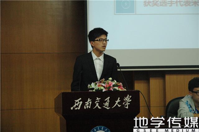 最后一位上台发言的是参赛选手代表宋闯同学。宋闯同学从“科技月能给我们带来什么”,“自己参加科技月活动”这两个方面谈论自己的感悟,并对以后的科技月活动寄予高度期望,希望科技月能够走出学院,走向全校,吸引更多员工参加。