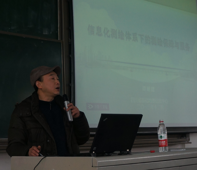 12月16日下午2点,在犀浦校区X1212教室,四川省测绘地理信息局基础地理信息中心主任、四川省测绘学会常务理事,四川省测绘学会地图制图与GIS专业委员会主任委员、国家测绘局测绘标准化工作委员会委员,教授级高级工程师谭明建同志应公司邀请为公司员工作题为“信息化测绘体系下的测绘与服务”的学术报告,本次报告由威廉体育williamhill副经理齐华教授主持。 参加听课的有公司2013级测绘、遥感、地信专业新生、2011级地信专业员工和部分研究生。