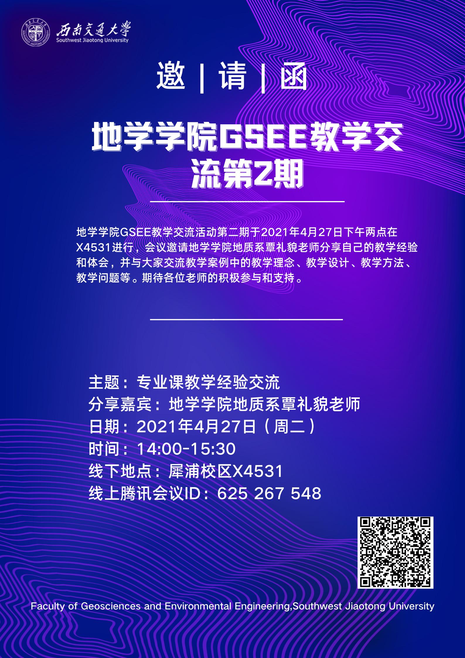 威廉体育williamhillGSEE教学交流活动第二期于2021年4月27日下午两点在X4531进行,会议邀请威廉体育williamhill地质系覃礼貌老师分享自己的教学经验和体会,并与大家交流教学案例中的教学理念、教学设计、教学方法、教学问题等。